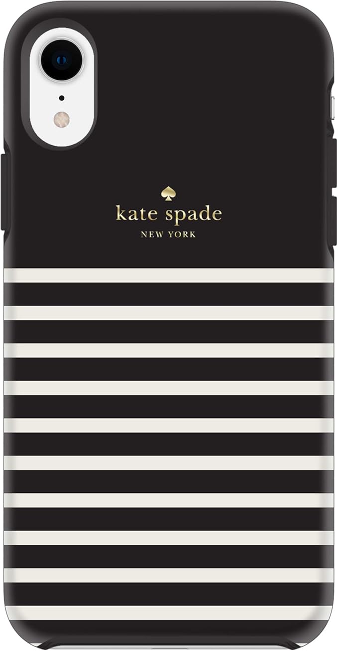 Amazon Com Kate Spade New York Black Cream Feeder Stripe Case For Iphone Xr Soft Touch Protective Hardshell